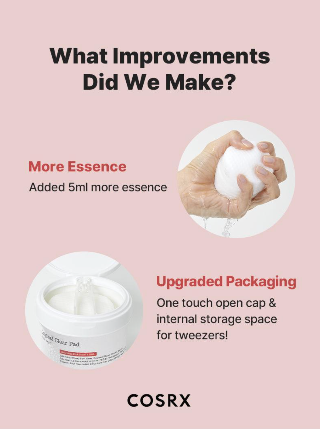 Soft cotton pads pre-soaked in essence to remove dead skin cells and excess sebum. Free of a cleansing component, also can be used as a makeup corrector.