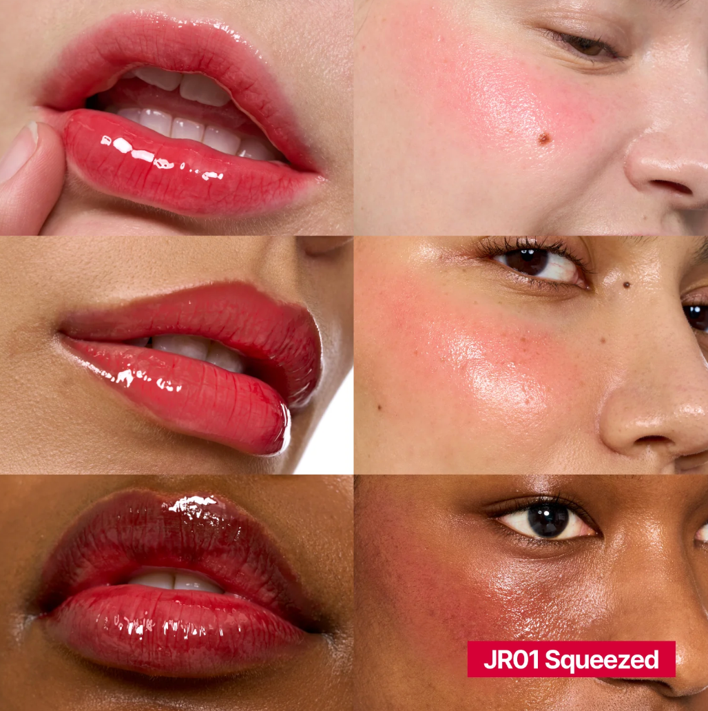 #Squeezed is a vibrant, refreshing coral-orange that mimics the bursting energy of fresh citrus juice. This shade is designed to instantly brighten the complexion with a clear, sun-kissed glow. The buildable pigment allows you to transition from a sheer, healthy wash of color to a bold, juicy pop without any stickiness. It is the perfect choice for an effortless, high-shine look that feels as lightweight as it looks luminous.